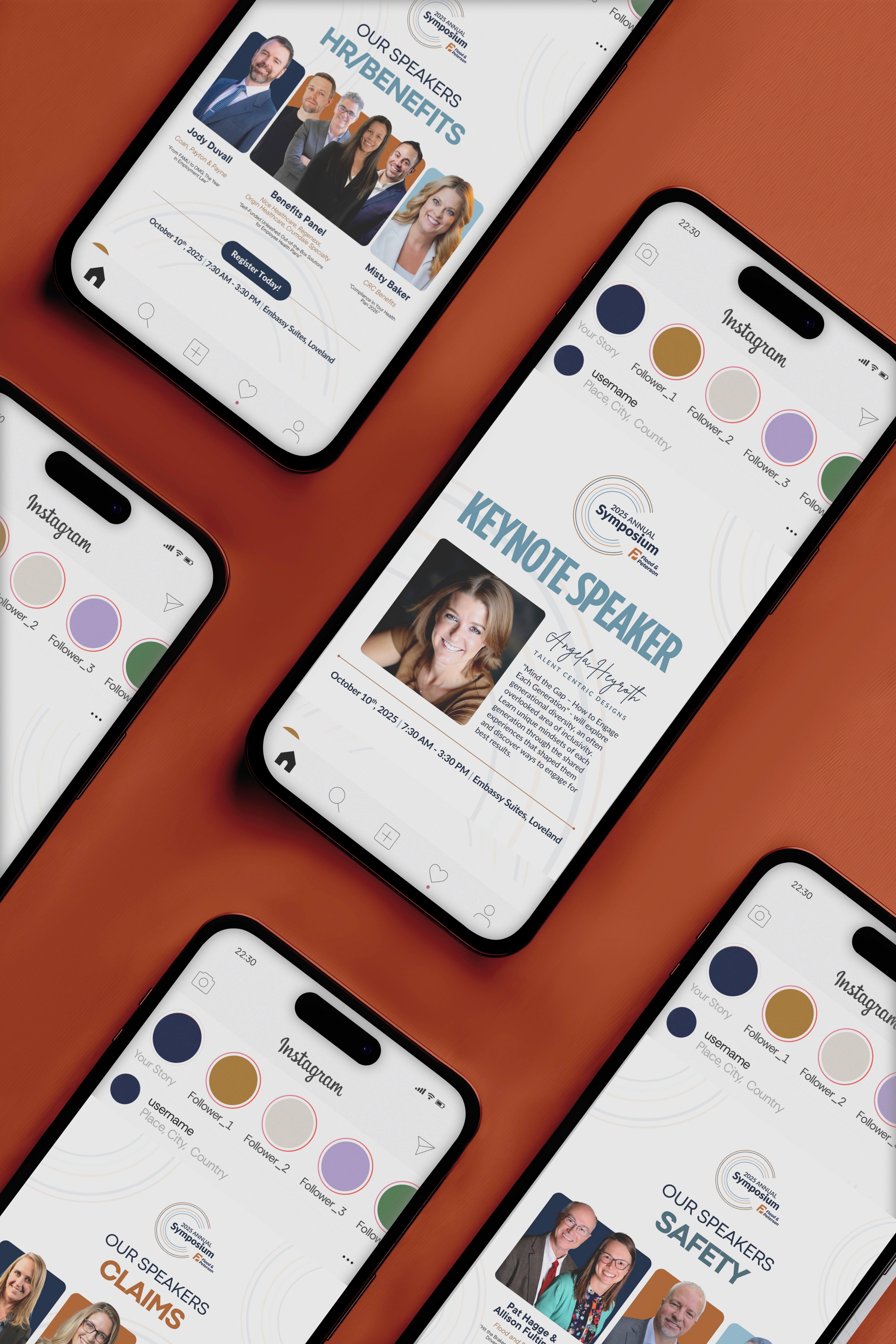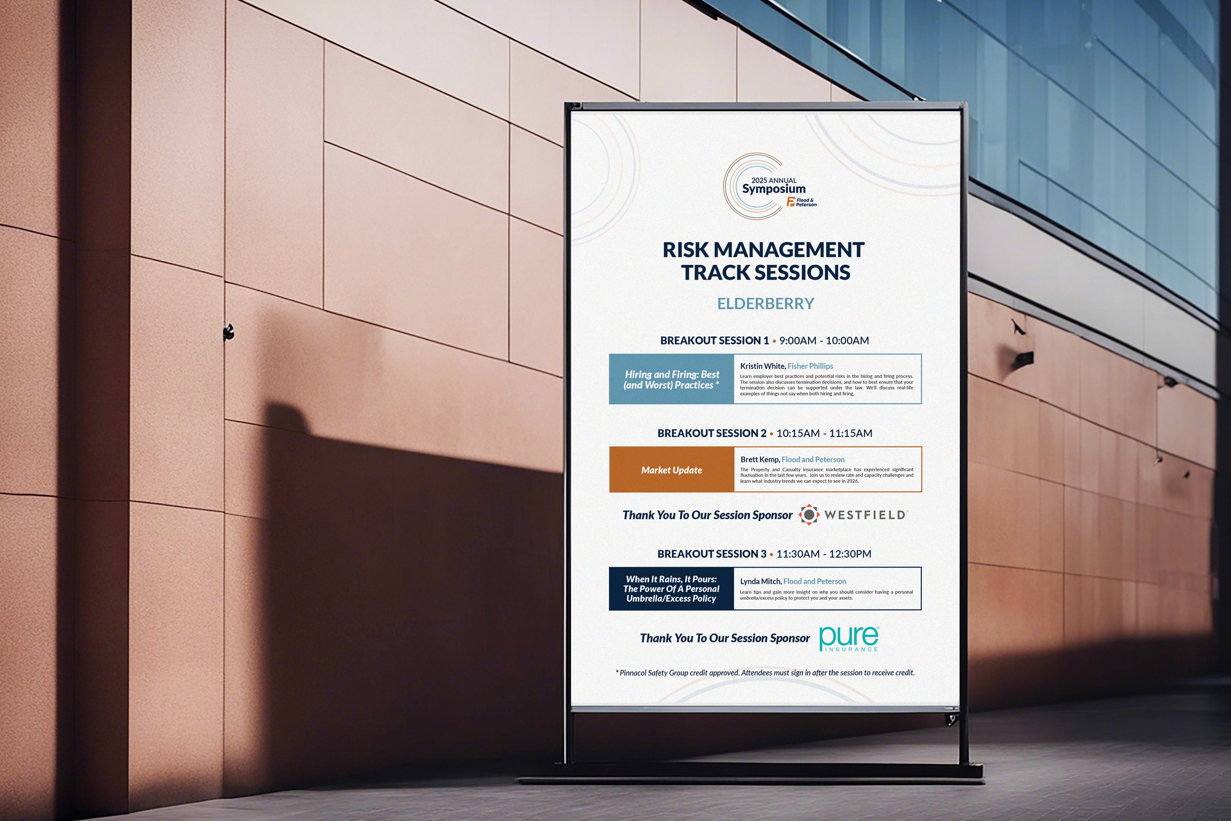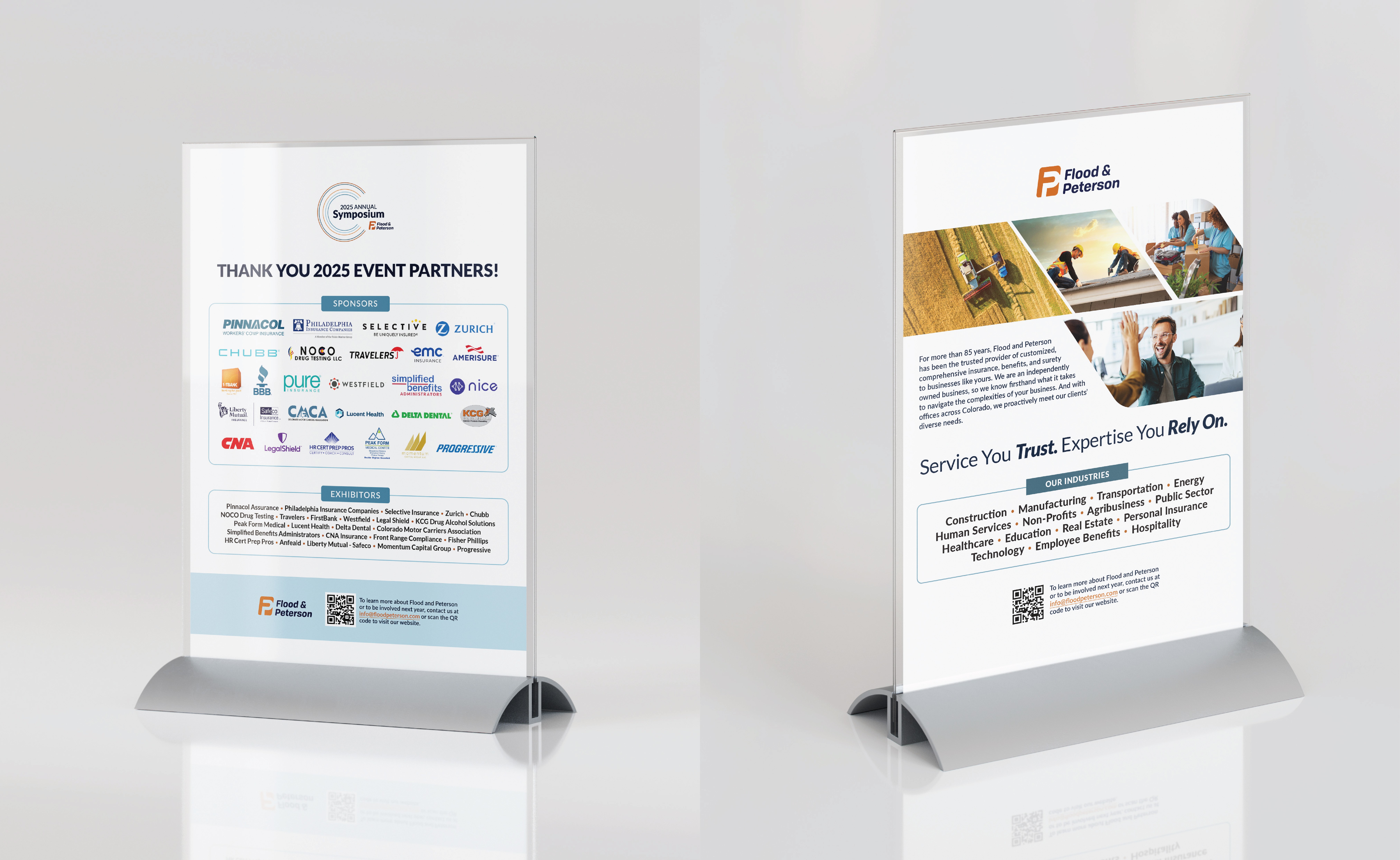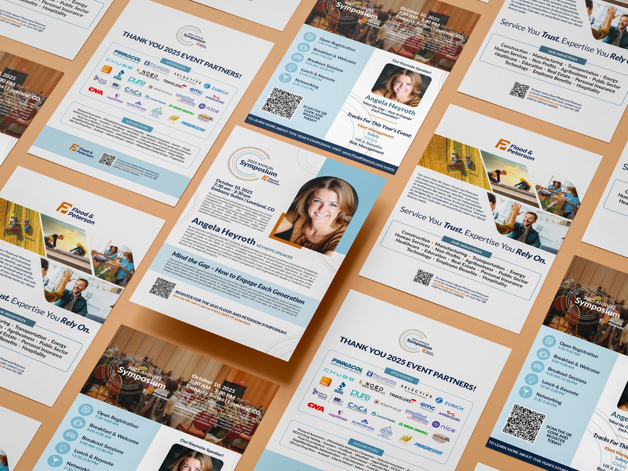 A collection of promotional materials for the Annual Flood and Peterson Symposium, featuring event branding and print/digital assets. Each piece is designed to be clear, cohesive, and engaging while remaining true to the brand.